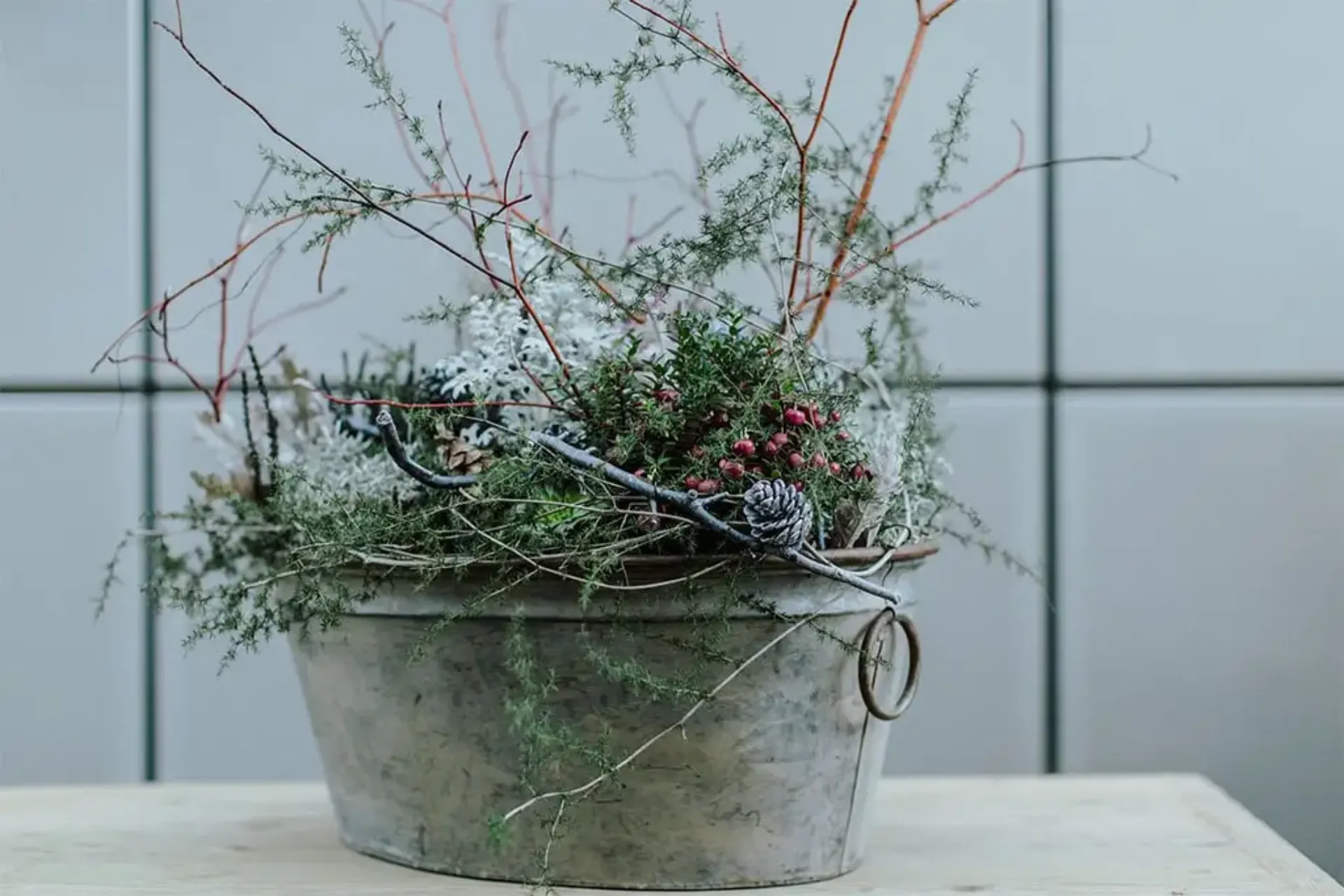 Dekorativer Blumenkübel für die kalte Jahreszeit