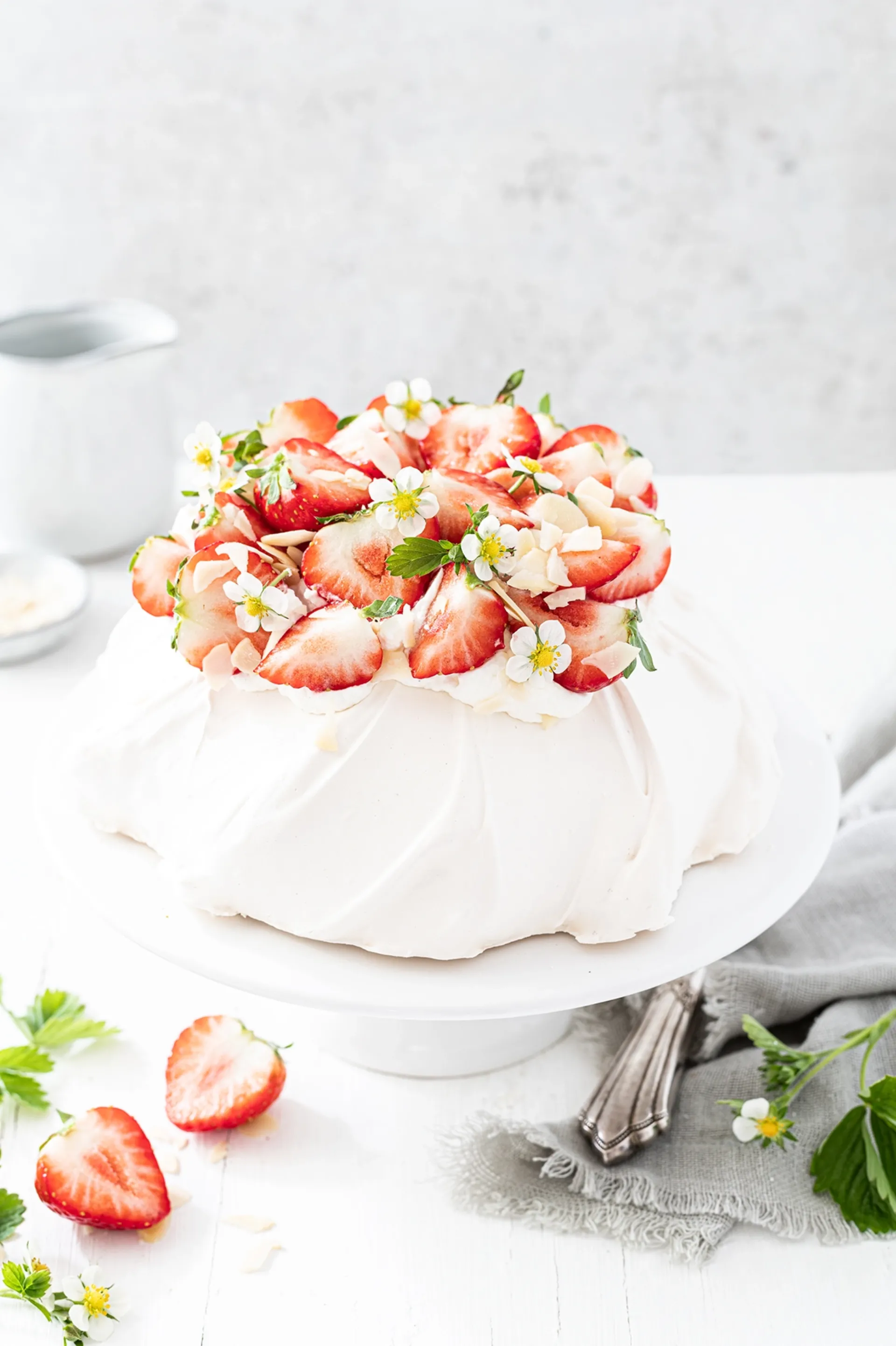Erdbeer-Pavlova mit Tonkabohnensahne