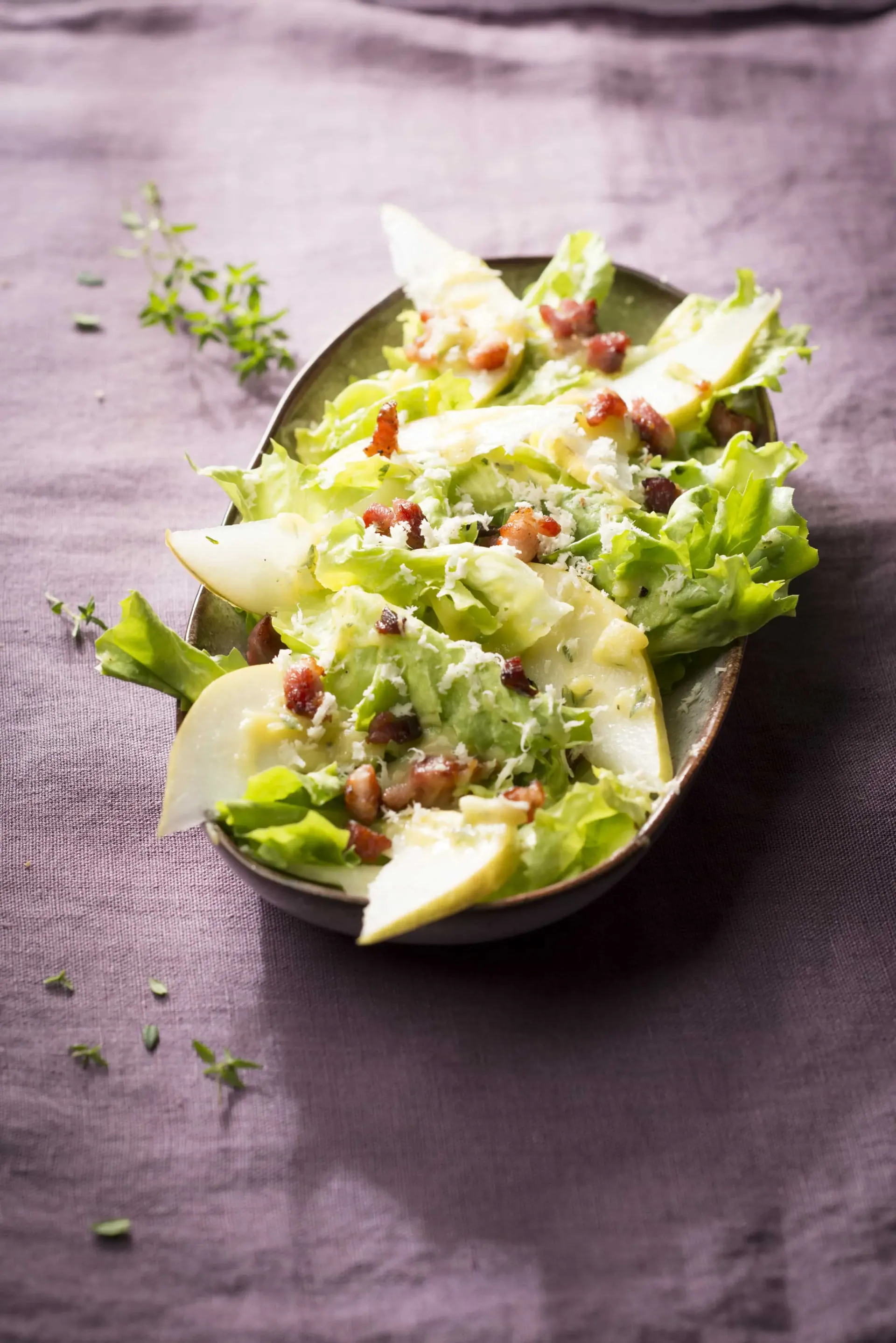 Endiviensalat mit Birne und Kartoffel-Speck-Dressing