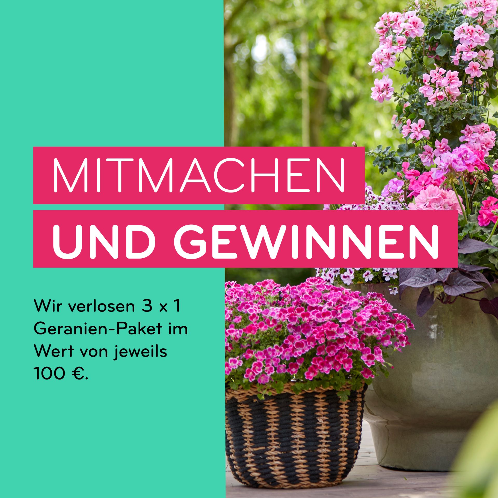Gewinnspiel: Wir verlosen auf Instagram und Facebook je 3 x 1 Geranien-Paket im Wert von jeweils 100 €