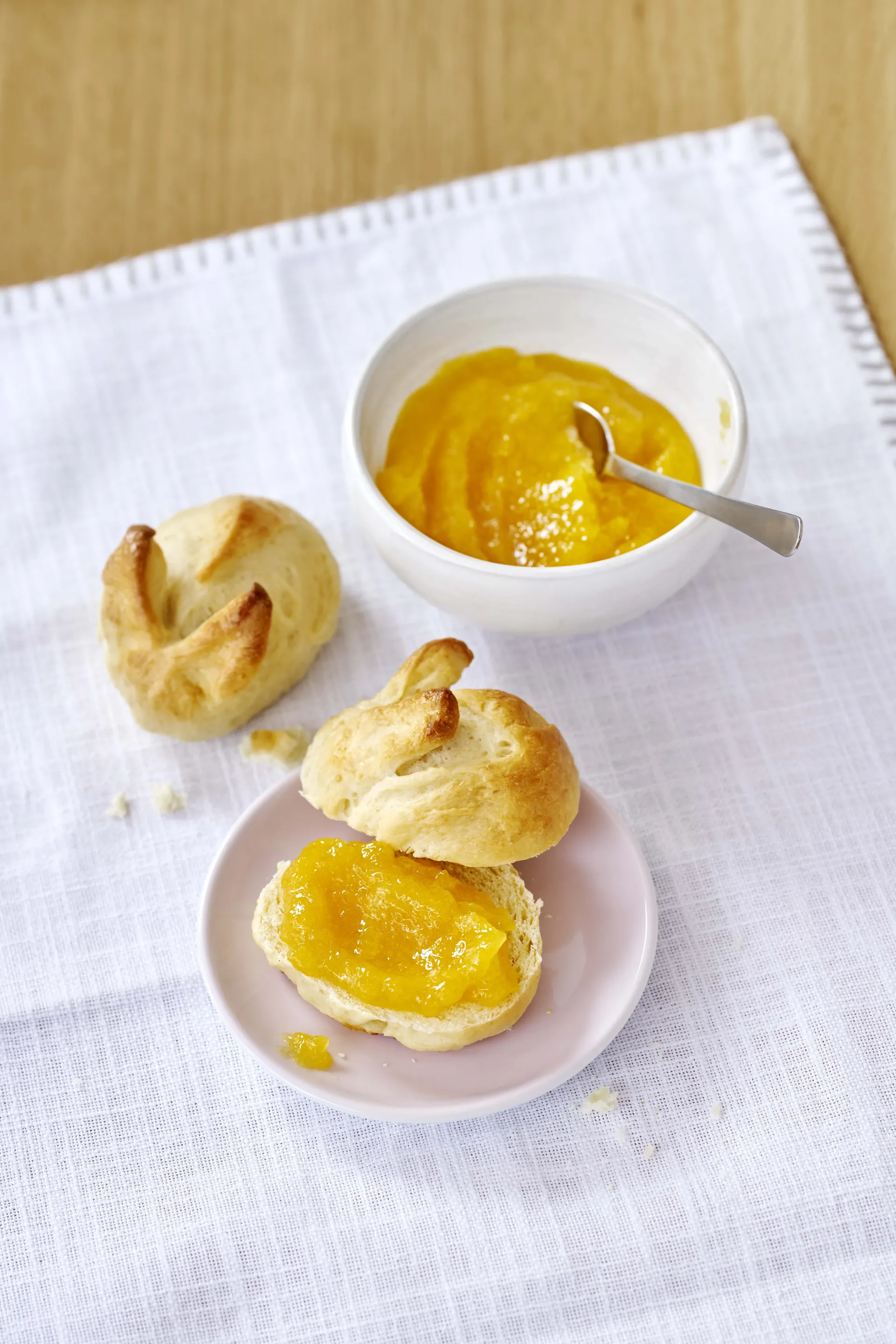 Osterhasenbrötchen mit Mango-Ananas-Orangen-Konfitüre