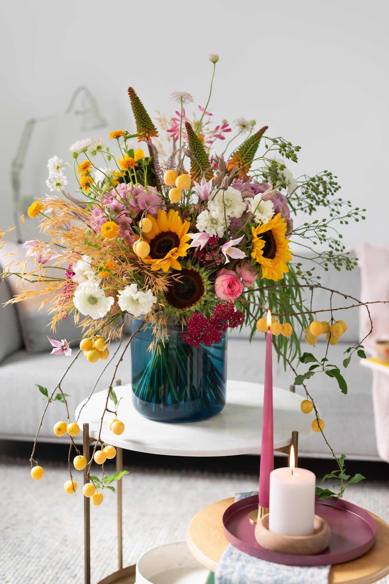 - Natürlichkeit vollenden: Mit Federgras und Mirabellenzweigen abrunden – für Schwung, Unerwartetes und diesen „Wie aus dem Garten“-Look.
